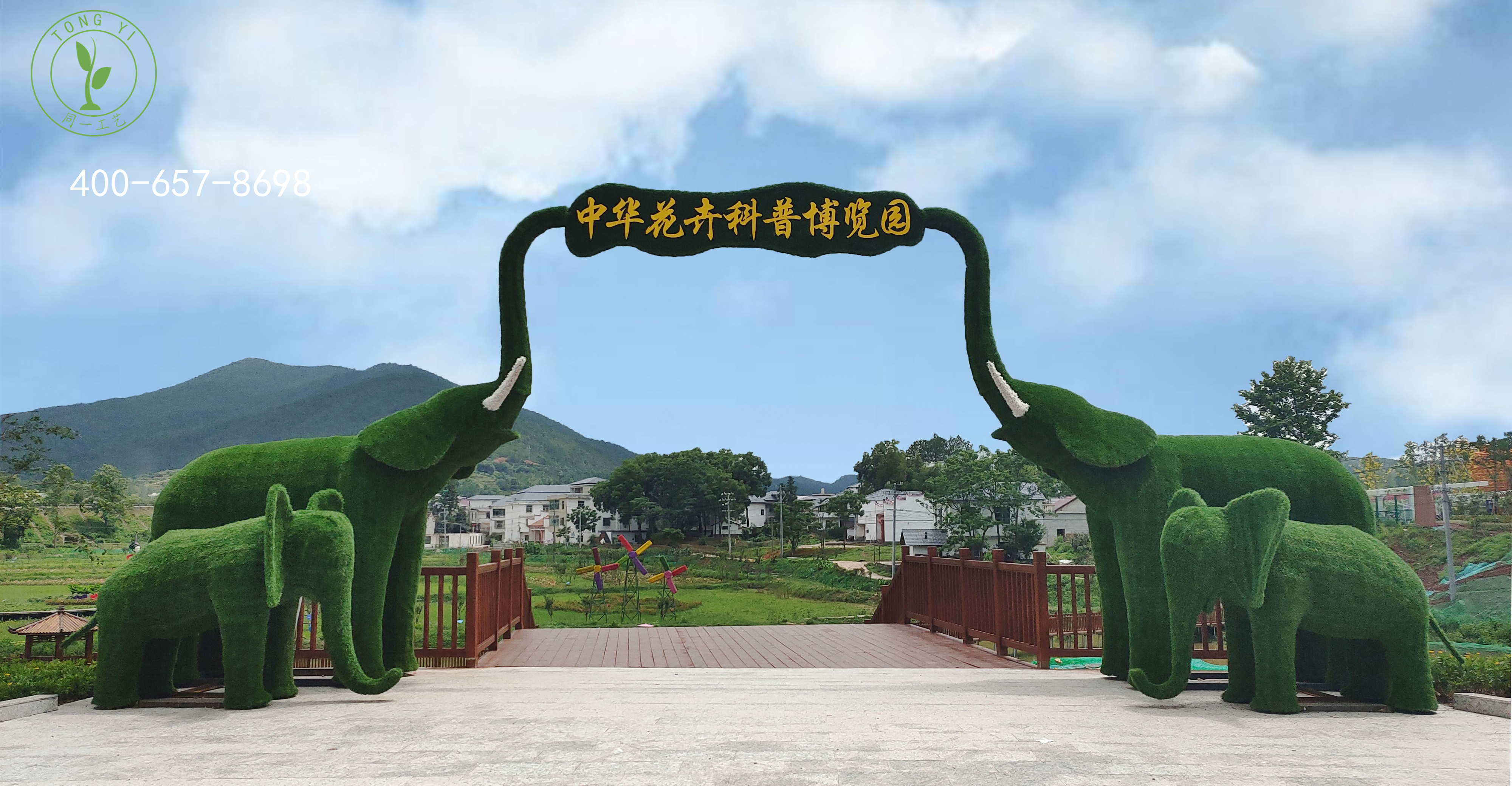 江蘇同一工藝品有限公司是一家專注于各類稻草工藝品 、卡通工藝品、仿真綠雕工藝品、立體花壇、輪胎工藝品 、五色草造型及仿真綠植墻、仿真花樹設計與制作的綜合性企業,承接風景區、旅游景點、花海山莊、農家樂、兒童樂園、特色小鎮等場所的主題點綴,景觀小品穿插,局部亮化等一些人工布景項目。公司擁有先進的設計理念,專業的制作團隊,以獨特的工藝,打造新穎的綠雕、草雕造型,贏得了客戶的青睞與信任。