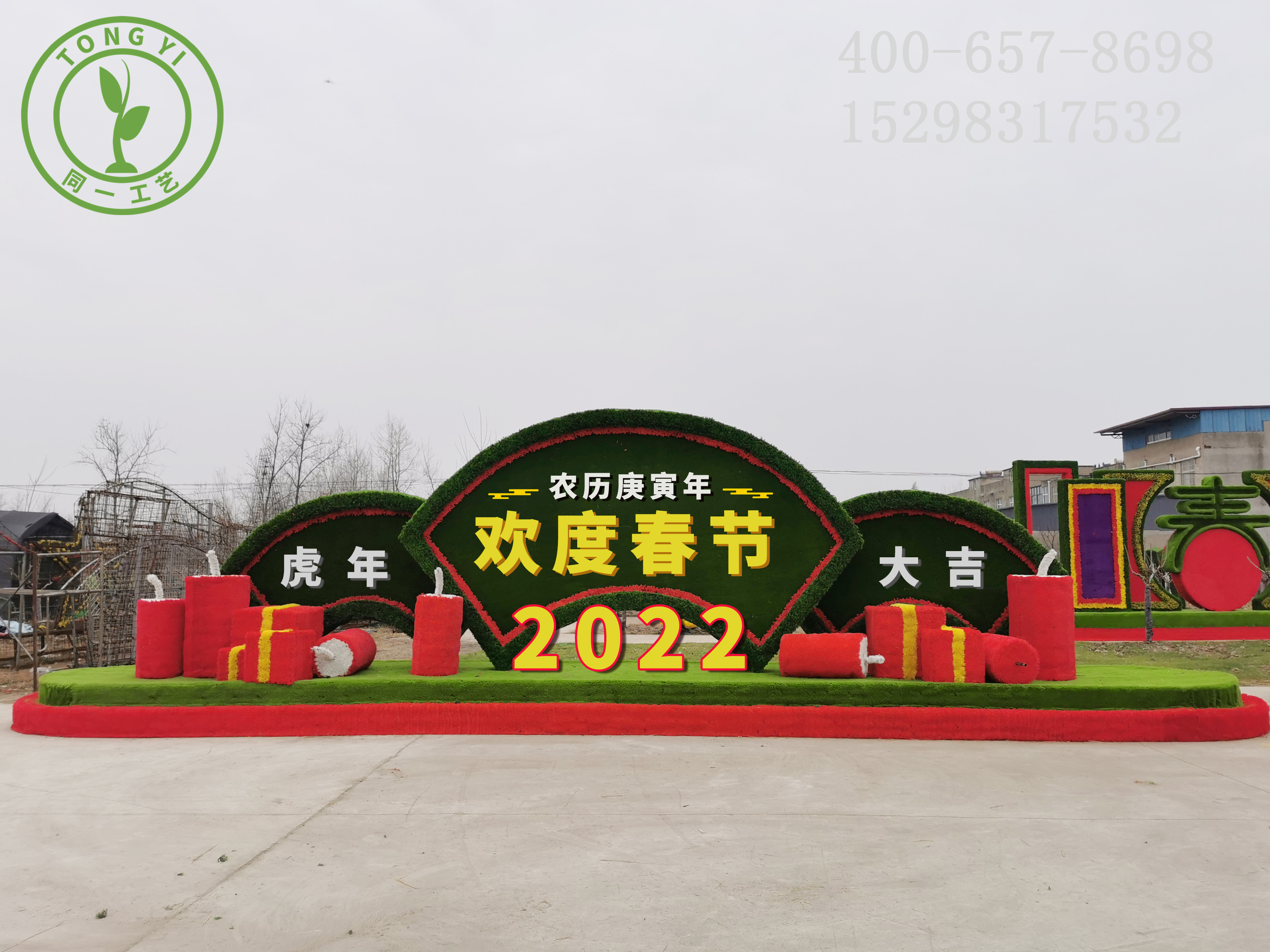 • 產品描述: 產品名稱:2022春節綠雕 產品品牌:江蘇同一工藝品 產品圖片: 產品工藝:產品工藝產品均為純手工打造,采用環保材料。圖紙設計——框架焊接——仿真植物裝飾——局部彩繪——產品質檢——物流配送——產品安裝。
