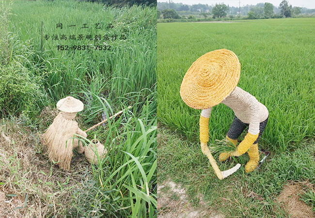 案例簡介:當你走進稻草工藝品制作而的稻草景觀草雕大門時,你看到的是這樣的一番景象,有的在插秧、有的在收割、有的在垂釣,這樣的和諧的鄉間生活可想而不可求;田間有牛、有蛙、有昆蟲。這樣的生活可能就是我向往的生活吧!